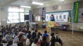 10月21日に向日市少年補導委員会による「交通安全教室」を実施しました。向日町警察署の方にも来ていただき、交通安全や信号機について楽しく学びました。