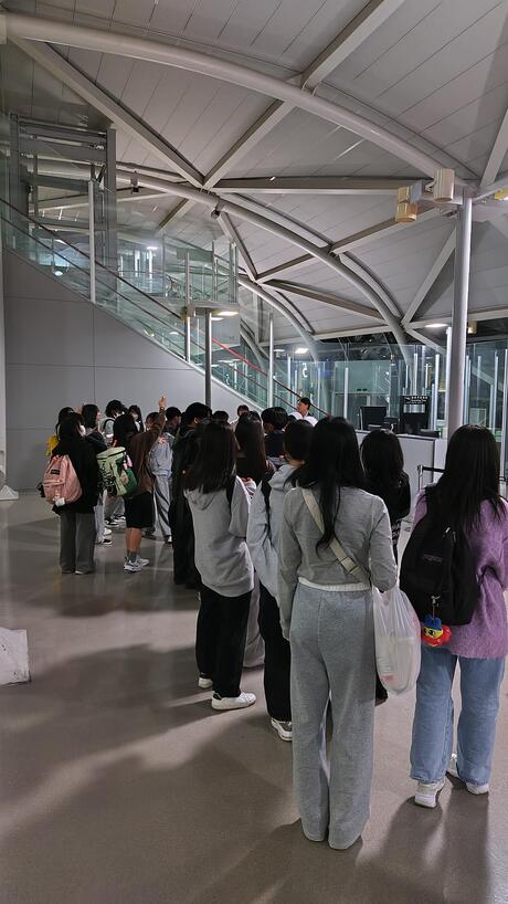 予約のパビリオンを見学した後は各自で自由に散策し、いろいろな場所で並んでいる生徒を見かけました。