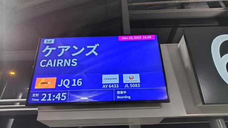 11/18(火)の夜に関西国際空港を出発し、11/19(水)の朝にケアンズに到着しました。