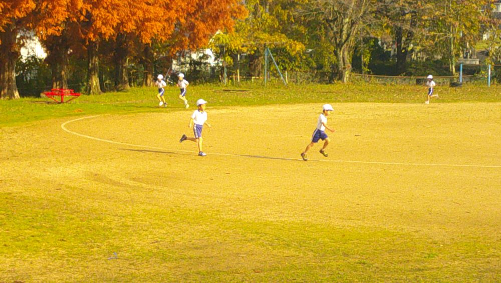 11月25日には、色鮮やかな木の葉からの応援を受け、3・4年生がマラソン記録会を行いました。
