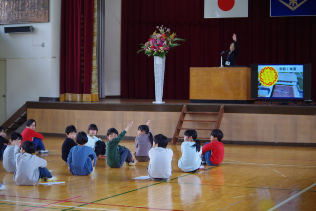 運営委員から総括、引継、決意表明があり、6・5年生中心の児童会から5・4年生中心の児童会になりました。
