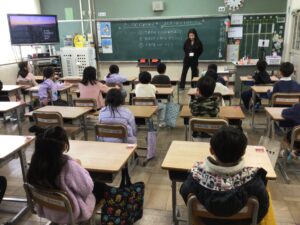 子どもたちは、実際に教室に入り、絵を描いたり工作をしたりして1時間だけですが小学生と同じように過ごしました。