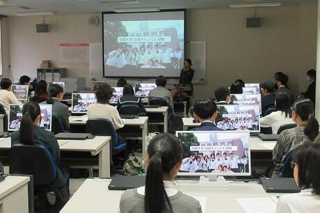 参加した中学生は19部の中から希望する部活動を選択し、高校生の部員による普段の様子や活動実績などについての紹介を聞きました。その後、少人数のグループに分かれて、部員の先導によるキャンパス見学ツアーに出ました。