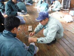 - ワイヤー・スプライス投稿者: 校長1月9日(金)、航海船舶コース3年生が、「総合実習」の時間に、実習船「みずなぎ」船長及び甲板部の皆様の指導をいただきながら、ワイヤー・スプライスに取り組みました。 実習船の乗組員の皆様には乗船実習以… 続きを読む: ワイヤー・スプライス