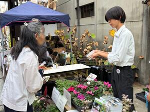 当日はあいにくの雨でしたが、バイオテクノロジー部の生徒や、生物資源工学専攻生徒、TAFS第2研究群で栽培管理しているシクラメンやジニア等、秋冬用のたくさんの種類の草花を、多くの方々に届けることができました。