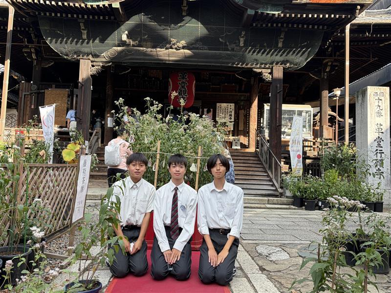 研究成果をまとめたポスター展示や養液栽培システムの紹介、フジバカマと蜜蝋を使用した和蝋燭の販売をとおして、地域の方から海外観光客まで、生物資源保全や水環境保全について説明をすることができました。また、革堂行願寺の中央に本校で育成した茎頂培養由来の藤袴も飾っていただきました。引き続き、地域資源の保全活動を行っていきます。