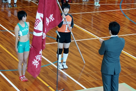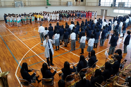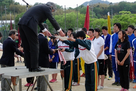 5月17日(金)に18日に行われる、両丹高等学校総合体育大会の壮行会が行われました。岸田副校長の激励の後、陸上部女子主将の中村有希(橋立中学校)さんが選手を代表して選手宣誓を行いました。