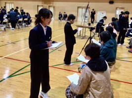 瑞穂中学校の合唱はコンクール形式ではないのですが、より良い歌を完成させようということには変わりありませんね。コンクールで優勝ために「歌詞をはっきりさせること」や、「楽譜を再確認して、強弱や息継ぎなど楽譜の指示通りに歌うこと」というようなことをアドバイスしてもらうことが多いようです。クラスの合唱、全校合唱でも意識してみてくださいね。