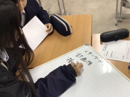 文化祭の取組や準備が大詰めとなってきましたが、文化祭の合唱や総合の発表の練習だけではなく、通常の授業もしっかりと行なっています。1年生の英語の授業におじゃましました。単元の終わりに向けてパフォーマンス課題に取り組んでいる様子でした。