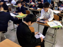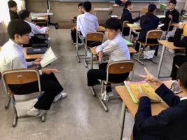 文化祭の取組や準備が大詰めとなってきましたが、文化祭の合唱や総合の発表の練習だけではなく、通常の授業もしっかりと行なっています。1年生の英語の授業におじゃましました。単元の終わりに向けてパフォーマンス課題に取り組んでいる様子でした。