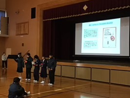今日は6時間目の後に全校集会が行われました。今日の担当は図書委員会です。