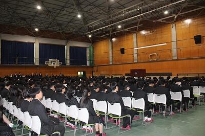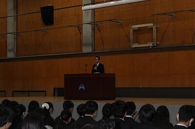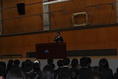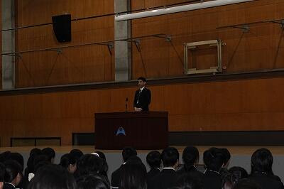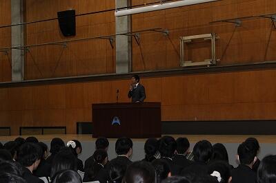 教務部長からは授業を「受ける」ではなく主体的に「臨む」意識をもって、毎日の授業を大切にしてほしいというお話、