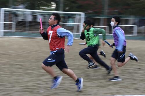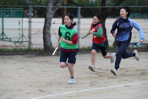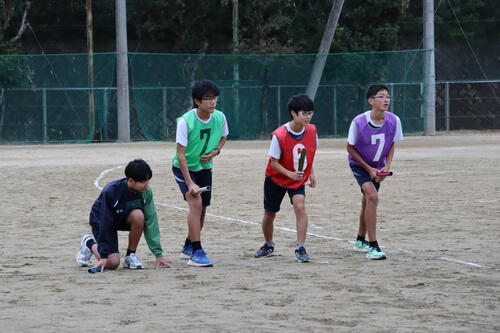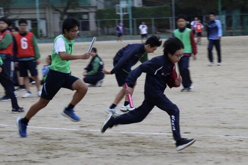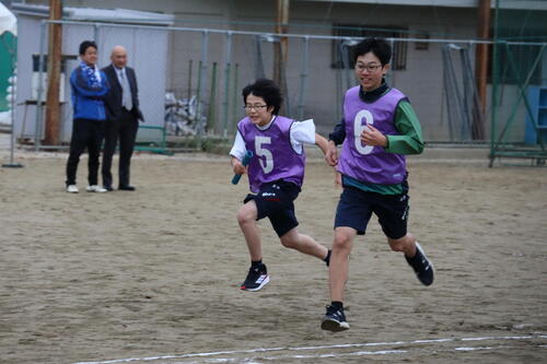 2つ目の競技は、学年混合リレー。学年混合で8つのチームを作り、2回のリレーを行いました。後半は小雨が降り始め、少し肌寒い気候ではありましたが、それを吹き飛ばす熱い走りと応援が印象に残る競技となりました。