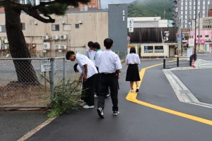 西舞鶴駅西口付近にて、13名の生徒が清掃活動を行いました。
