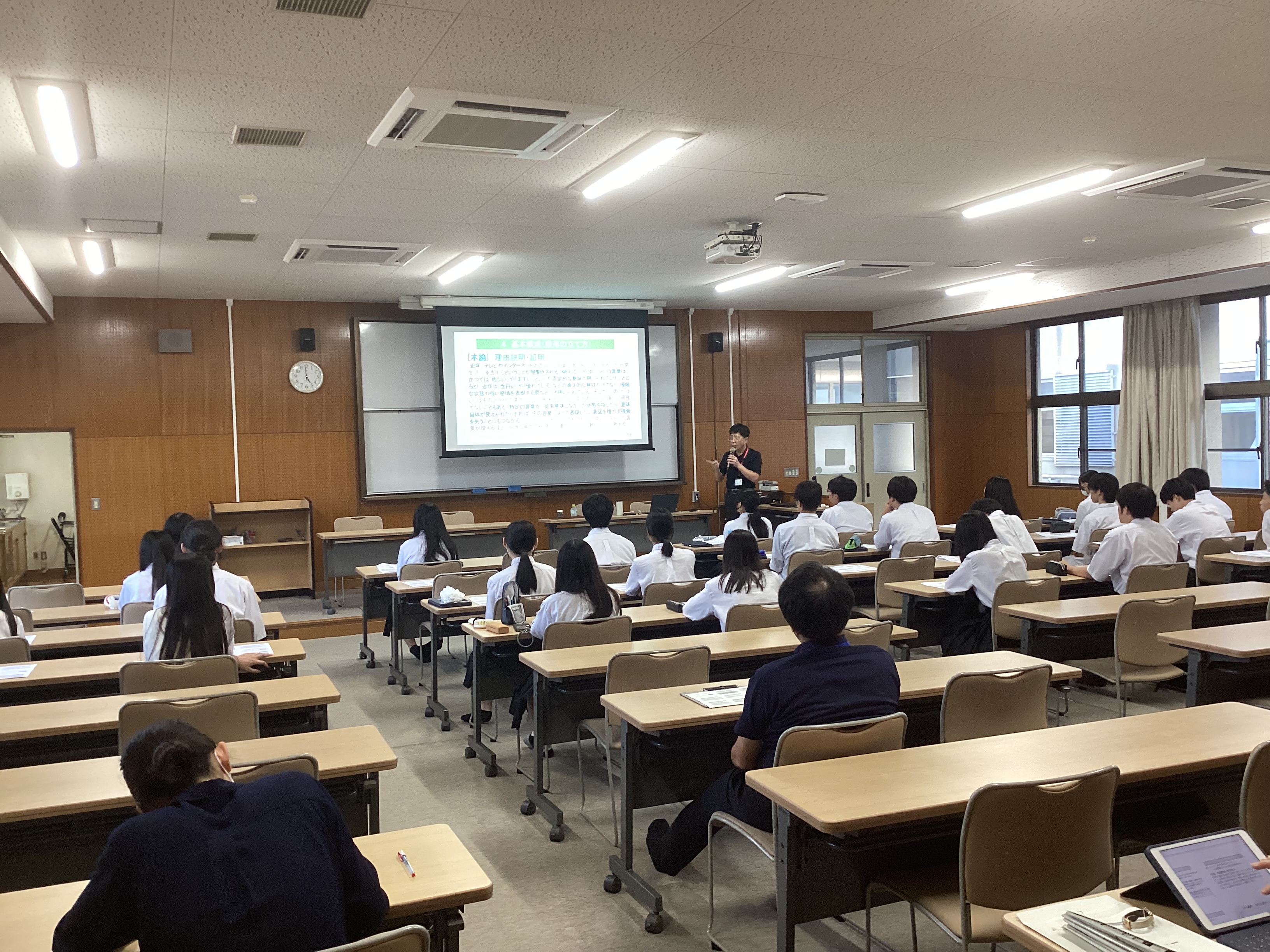 本日、放課後、3年生の希望者を対象に、外部講師による小論文対策講座を実施しました。旺文社蛍雪アドバイザー兼龍谷大学高大連携推進室フェローの堀先生に講義をいただき、小論文の基本や評価基準、説得力を増すための表現の工夫や考えの伝え方ついて理解を深めることができました。