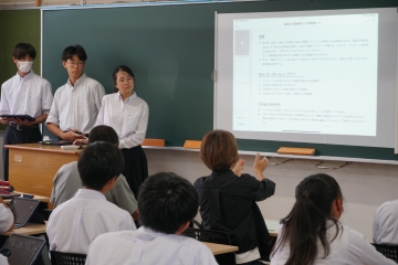本校理数探究科1年生は、夏期実習の成果をもとに対話型の中間報告会を行いました。