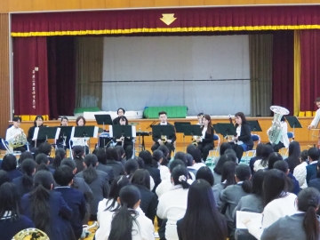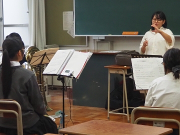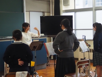 「風の舞」、「サウンドオブミュージック(フレックス版)」の曲を演奏していただいた後、パートごとに分かれて練習方法や演奏のコツを教えてもらいました!教わったことを糧に、これからも日々の練習を頑張っていきます!