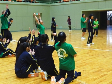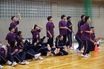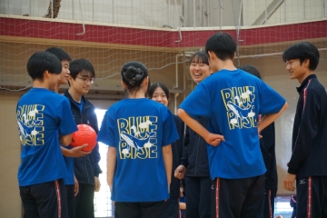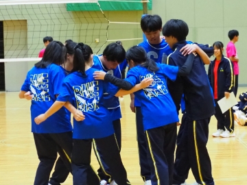 待ちに待った球技大会が、学校の体育館(3年生)と舞鶴文化公園体育館(1・2年生)で実施されました。球技大会に向けて、こっそり練習をしている生徒たちもいたようです。当日は、気温が上がらなかったこともあり、ジャージを着ている生徒も多かったです。しかし、ジャージの下には、おそろいの団Tシャツ!