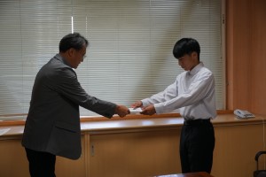 式では、校長先生から生徒会役員への任命書が1人ひとりに手渡され、皆緊張の面持ちで受け取っていました。