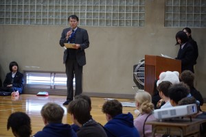 ![]() 校長先生も英語で挨拶 |