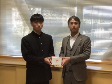 生徒会で取り組み全校生徒から集まった「赤い羽根共同募金」、社会福祉協議会様にお渡しするにあたり、会長様にご来校いただき贈呈式を行いました。