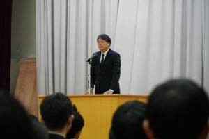 受験を控えた3年生には、願うことは感謝することであり、周囲との繋がりが幸運なヒントを運ぶため、視野を広く持つよう励まされました。 1・2年生には、後から変えられない今の評価を大切にすべきとし、脳の仕組みから「やる気は始めてから出るもの」である、何事もまずは小さくても行動に移すことが、2026年を実りある一年にするために不可欠であるとお話されました。 |