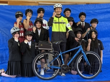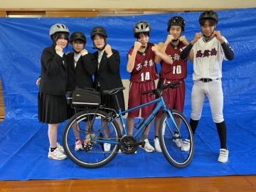 東舞鶴高校の生徒と、本校自転車安全利用推進員6名が参加しました。生徒のみなさん、ルールを守って安全運転に努めましょう。