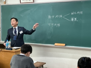 2年生の家庭基礎の授業では、2月5日(木)に2年2組と2年5組を対象として、ジブラルタ生命保険株式会社の小森篤彦様を講師にお迎えし、「将来のお金のことを考えよう」と題した金融教育セミナーを実施しました。