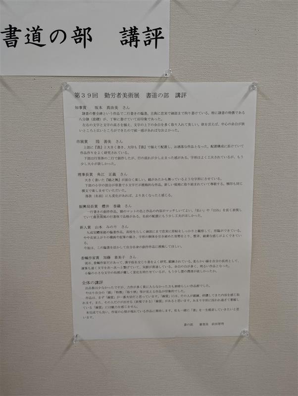 舞鶴勤労者美術展が開催されています。3月7日~9日は書道・絵画の部があり、新人賞を受賞した山本さんの作品も展示されていました。