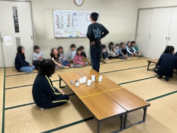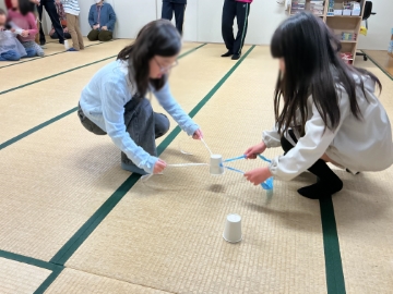 ![]() ペットボトル空気砲ができて、次はいよいよ的当てのルール説明 |