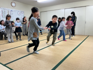 ![]() ペアになって、ペットボトルに風船をかぶせます |