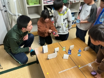 ![]() 完成!高校生手作りの的を狙って遊びます |