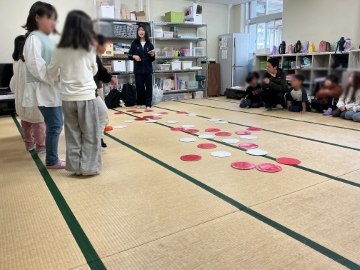 ![]() 挨拶のあと、「ひっくりかえいしゲーム」の説明します |