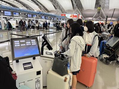 全員無事飛行機に搭乗します。今回は自分でのチェックインでした。難易度が高い手続きでしたが、みんなちゃんとできました!
