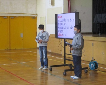 後期の児童総会を行いました。各員会から目標や計画を伝え、聞き手からは感想や質問を言うという流れでした。発表者は聞き手に分かりやすく伝えようと工夫して発表し、聞き手は自分の考えを持ちながら聞き、疑問点は質問をしていました。外国語の研究を通して培ったきた力が他の教科や活動にも生かされていると実感しました。子どもたちも教師も「京都1」の学校づくりをめざしていきます。