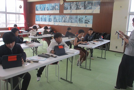 6年生が社会科の授業の一環として地域にお住いの斉藤様にお世話になり、戦争中・戦後の話をしていただきました。1945年7月29日・30日に舞鶴に爆撃があった時の話や戦後の傷痍軍人の話、西八田や綾部にも戦死者や負傷者が多数いた話等、戦争の悲しみや命の尊さについて子どもたちは実際の体験談を通して多くのことを学びました。斉藤さんのまとめの話では、「勉強やスポーツを頑張ってほしい。平和を守れる社会を作ってほしい。」と言っておられました。子どもたちの感想は、「戦争をするのではなく、話し合い平和的な解決をしていきたい。」「世界の戦争を終わらせてほしい。」「戦時中は15歳でも工場で働いていたけど、今やりたいことを楽しんでやりたい。」などが出ていました。一人一人話をしっかり聞き、自分の言葉で感想を言えていました。