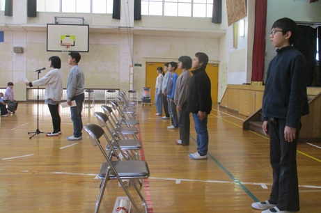 卒業式に向けて全校練習を行いました。在校生は初めての練習でしたが、6年生のピリッとした姿を目の当たりにし、最後まで姿勢よく頑張ることができました。16日に予行練習を行い、19日に本番の卒業証書授与式を迎えます。当日は厳粛な中に温かく、思い出に残る式になるよう全校児童、全教職員で心を込めて準備を進めていきます。