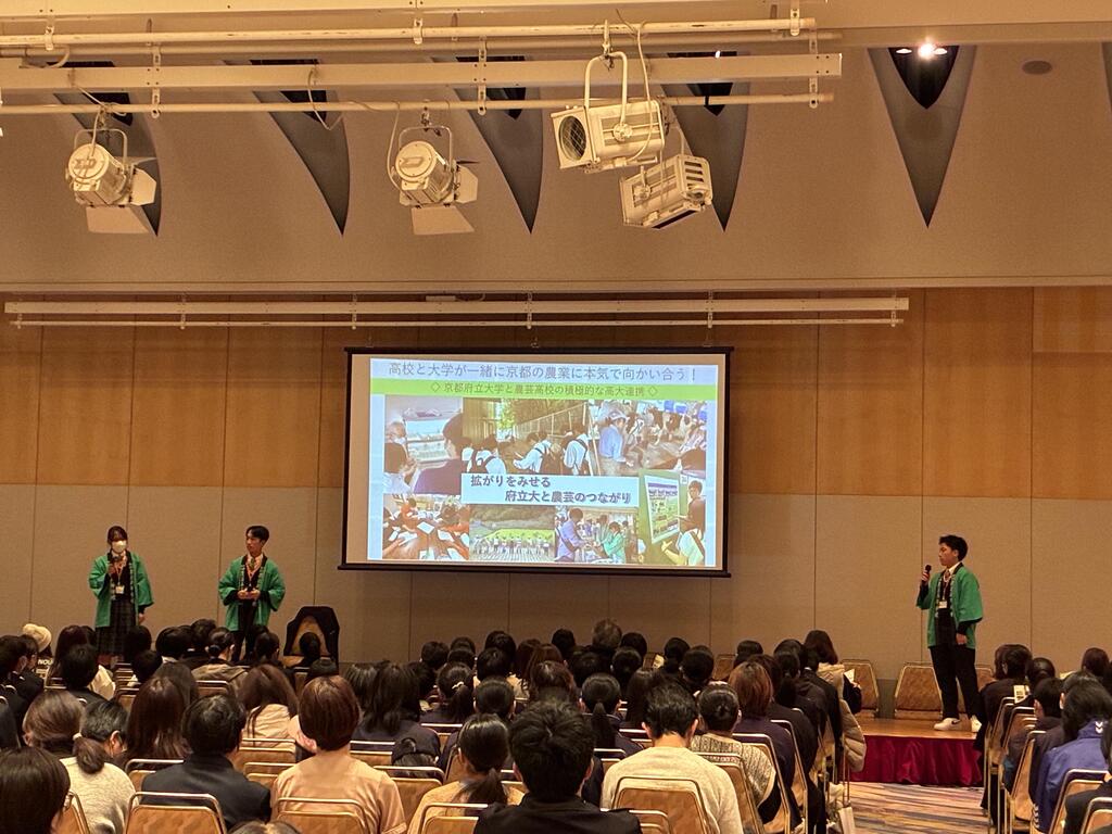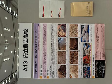 府立大学の学園祭『流木祭』に参加し、これまでの連携活動のパネル展示と野菜や米、ヨーグルトなどの生産物販売を行ってきました。初めての大学での学園祭、高校で実施する農芸祭とはまた違った雰囲気を味わうことができました。 また、この日は府立大学開学130周年記念の催しも実施されていました。