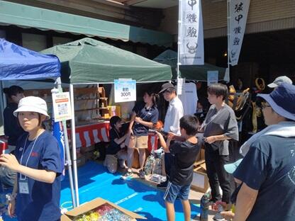 9月6(土)、7日(日)の二日間にわたりJR嵯峨嵐山駅前で「嵯峨嵐山夏祭り2025」が開催されました。この夏祭りは嵯峨商店街と京都日台親善協会の共同主催によるもので今回で7回目とのこと。このイベントへのボランティアを募集したところ1、2年生の12名が手を上げてくれました。会場ではちびっ子向けの輪投げ、射的、スーパーボールすくい等のブースの運営や案内所での来場者対応などを商店街のスタッフに教わりながら行いました。ブースの設営、呼び込み、お金の管理、ちびっ子や親御さんとのコミュニケーションなど仕事はいっぱいあります。参加した他校の生徒ともあっというまに打ち解け、すぐに運営を任されるようになりました。差し入れのお茶や大量のおにぎりを頬張りながら猛暑の二日間を乗り切りました。