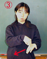 @両手の人差し指と中指をそろえて手の平側を上にし、シュプールを描くように上から下へ動かす。(=スキー)