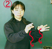 D指をとじ合わせながら、前に引っ張る。