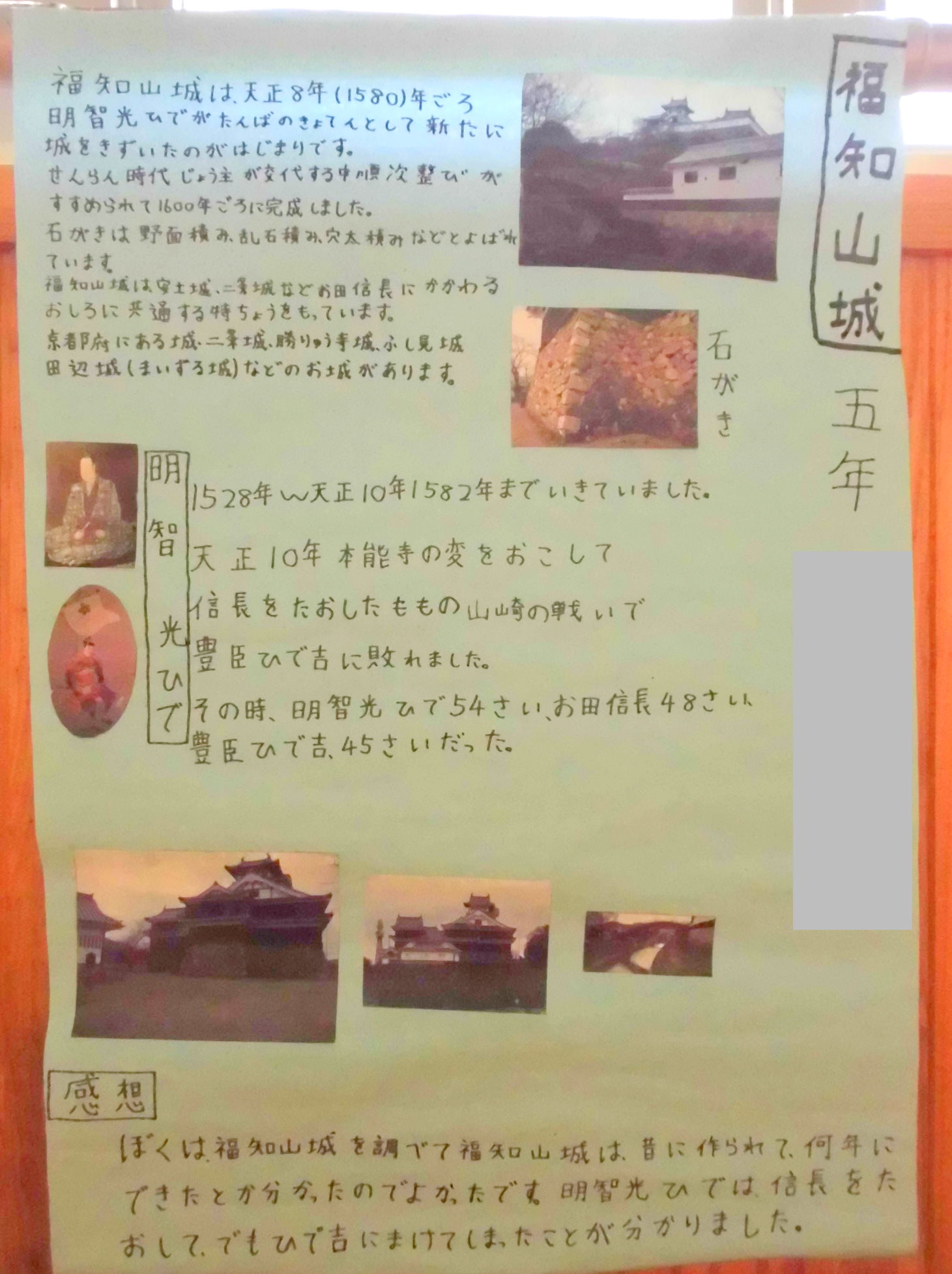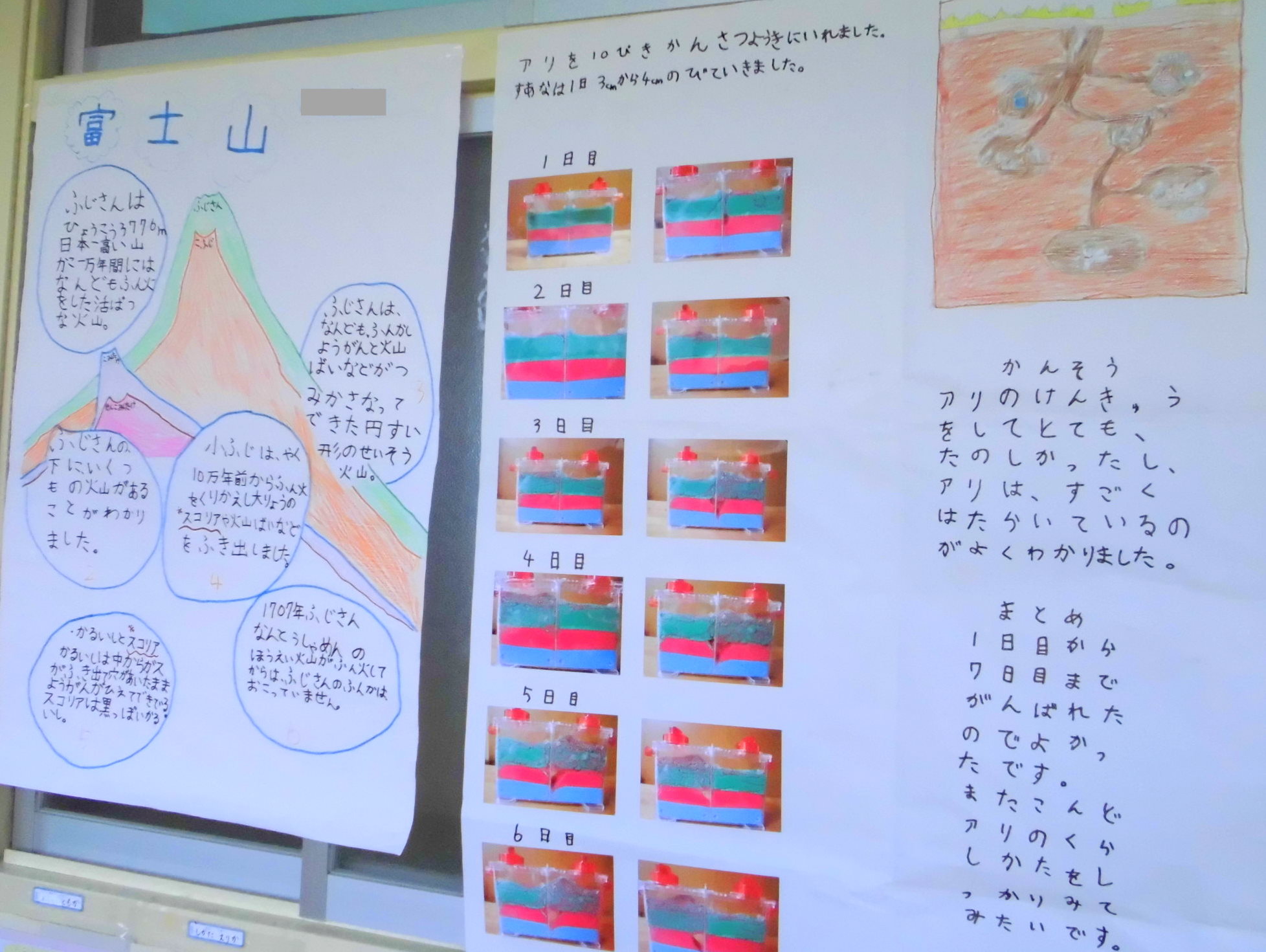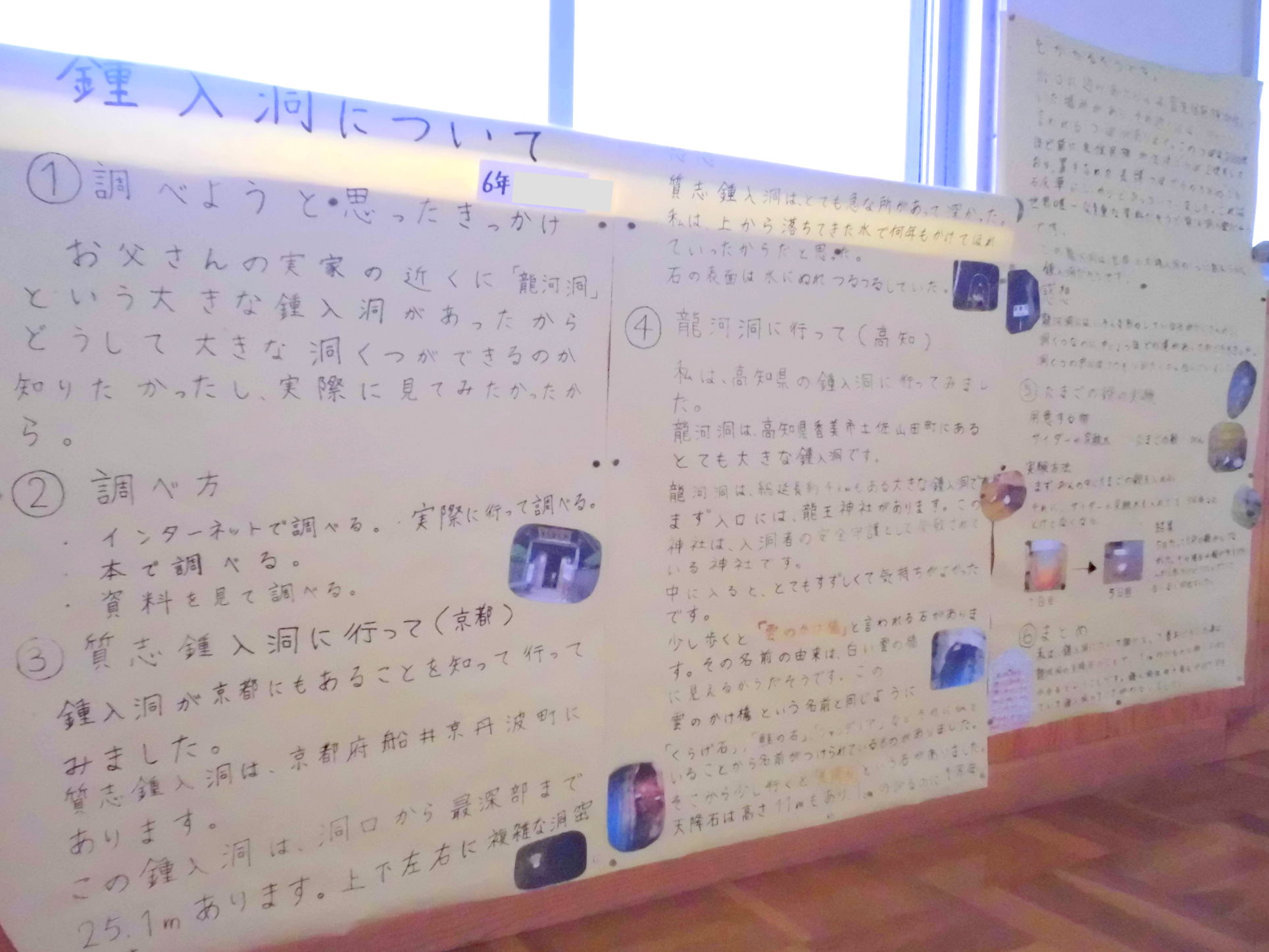 子どもたちが夏休みに作った作品、自由研究が廊下や教室に展示されています。