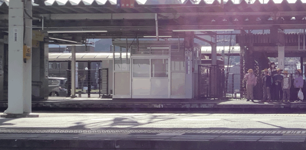 みんなで電車が来るのを待っています。(ホームの外から写真を撮ったので遠くてすみません・・・) - 人権(なかよし)旬間が始まりました