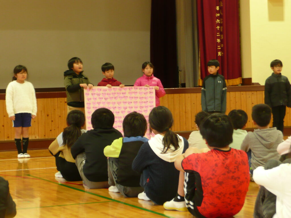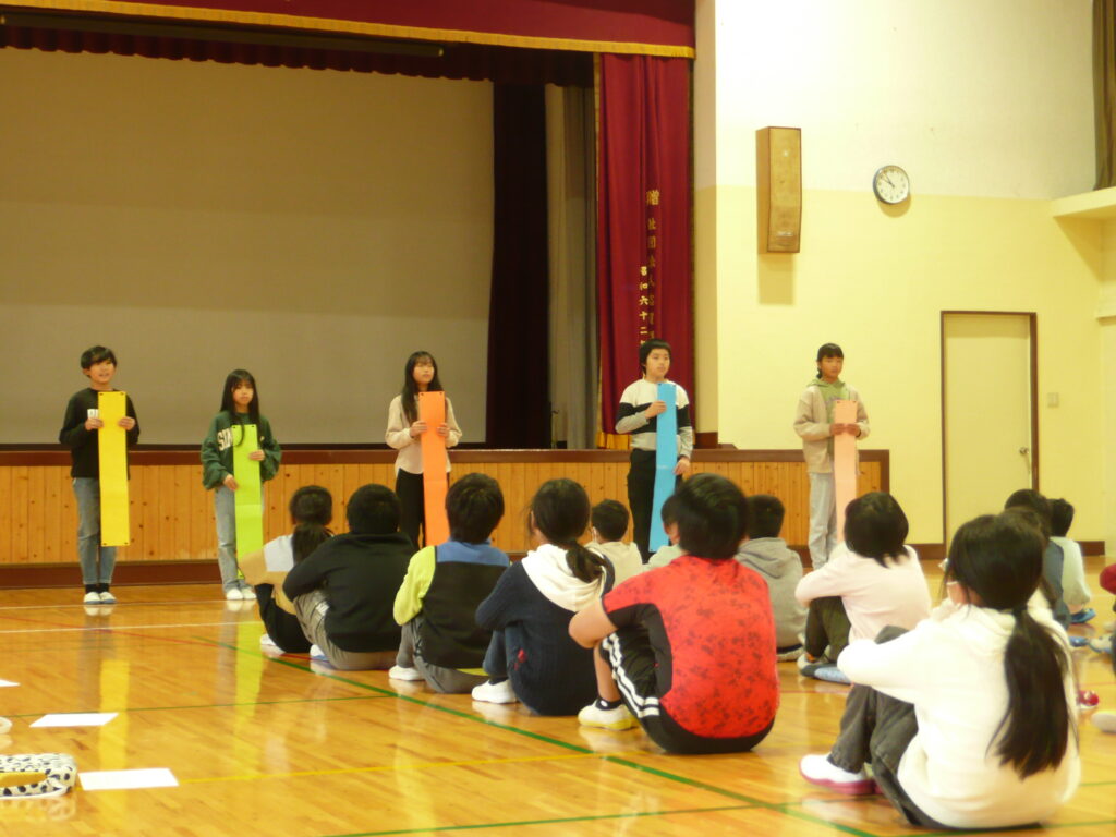 今日の2校時に「なかよし集会」を開きました。各学年の人権旬間の振り返りを交流したり、みんなで縄跳びをしたりました。志賀小学校が今よりもっと、温かな空気が流れ、「人を大切にする(できる)」学校になることを願っています。