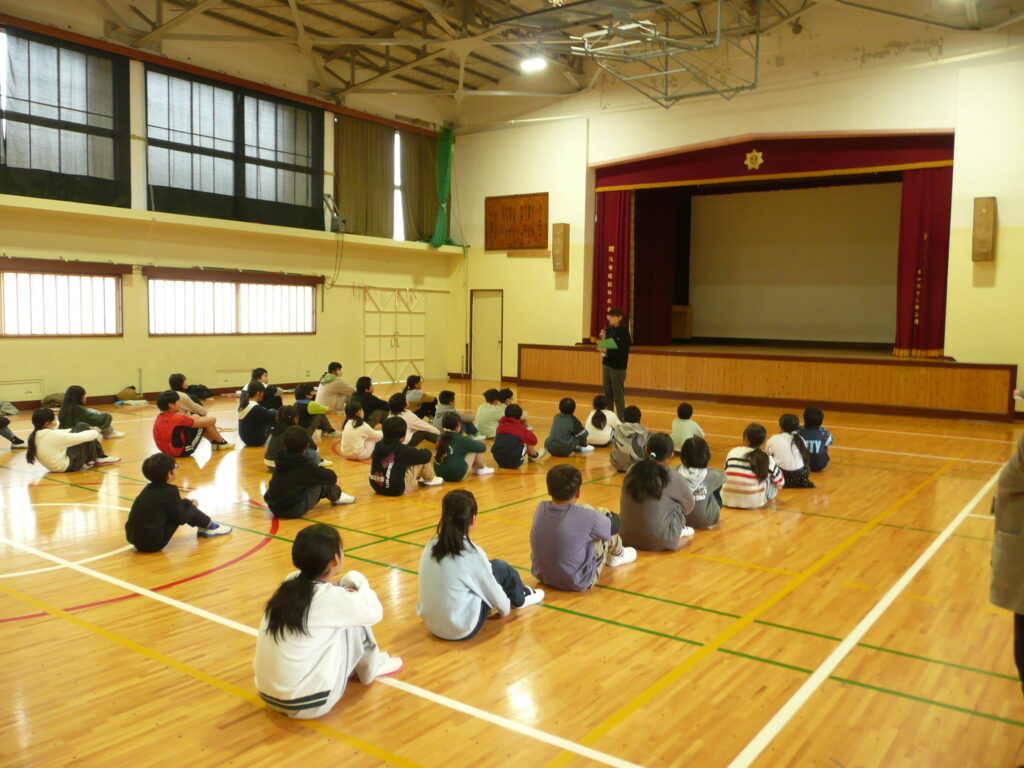 本校では、スポーツ庁委託事業「アスリートの派遣等による体育授業等の充実事業」に応募し、本日実際にアスリートの方に来ていただきました。元プロバスケットボール選手の川面茜様をお招きし、バスケットボールの魅力や技能上達につながるゲームや練習等をや教えていただきました。2時間、体育館には子どもたちの笑顔と歓声が響き渡っていました。最後は、川面さんと先生VS子どもたちの試合も行いました。手加減をしない大人たちの圧勝でしたが、「バスケットボールをしたい!」という子どもたちが増えるのではないかと感じた時間になりました。