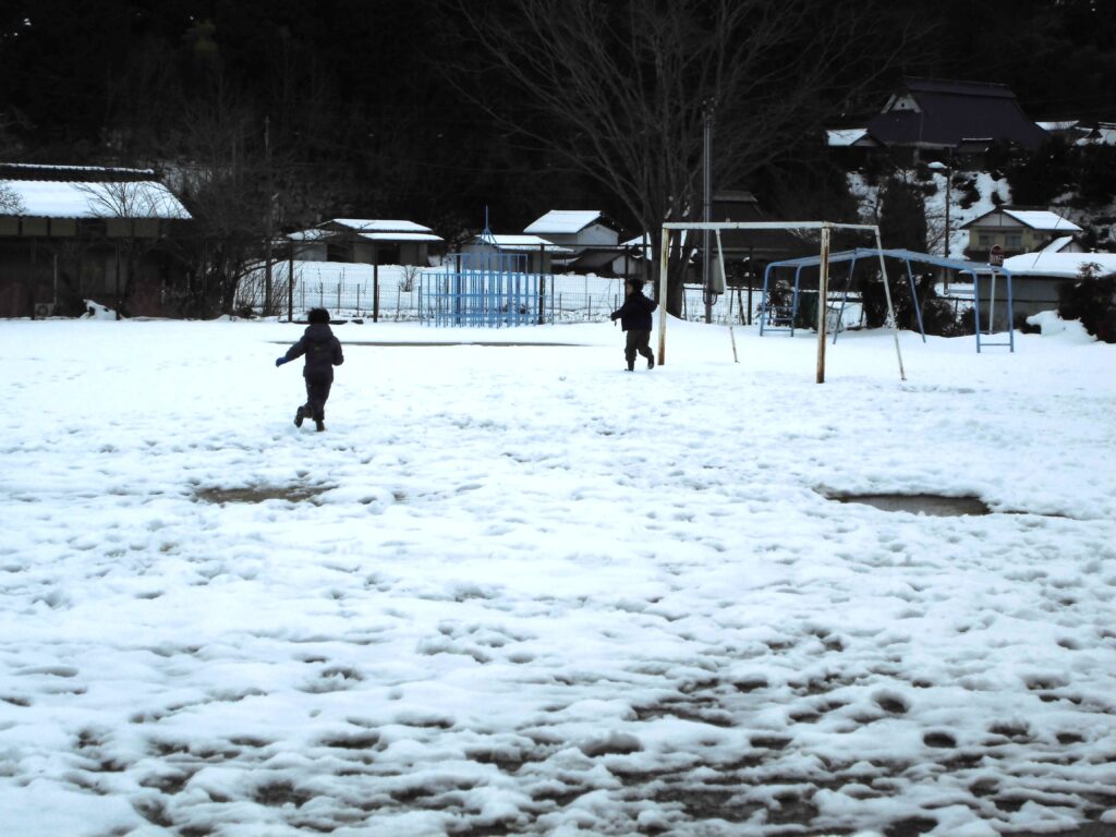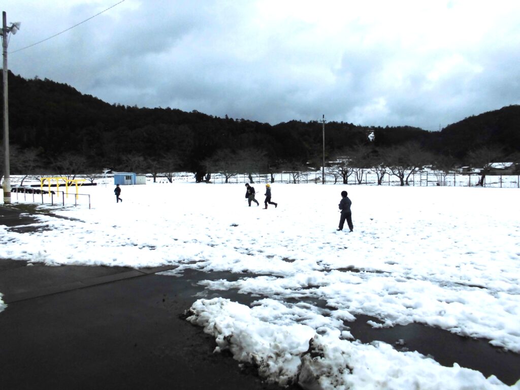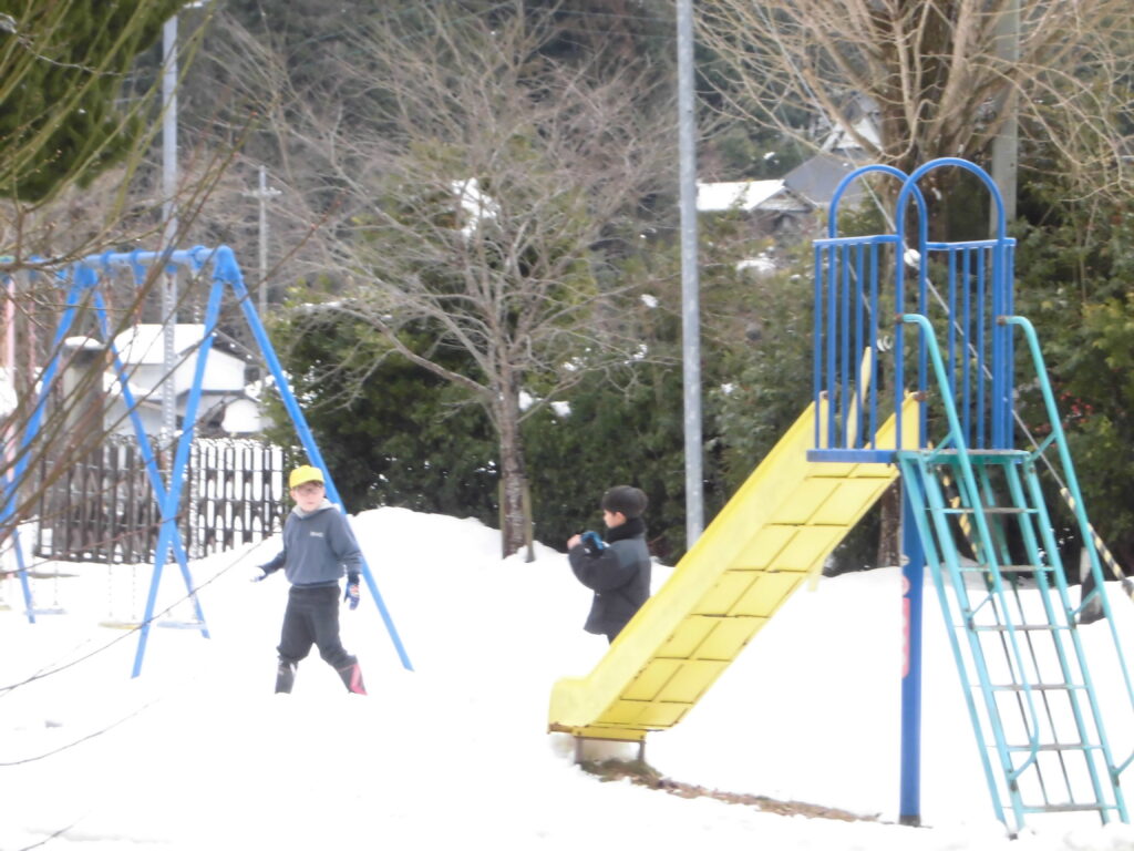 子どもの頃は、雪が積もるとワクワクしたものですが… 今も子どもだけがワクワクしているのかもしれません。志賀小学校は先週降った雪がまだ残っており、休み時間になると低学年が遊んでいます。