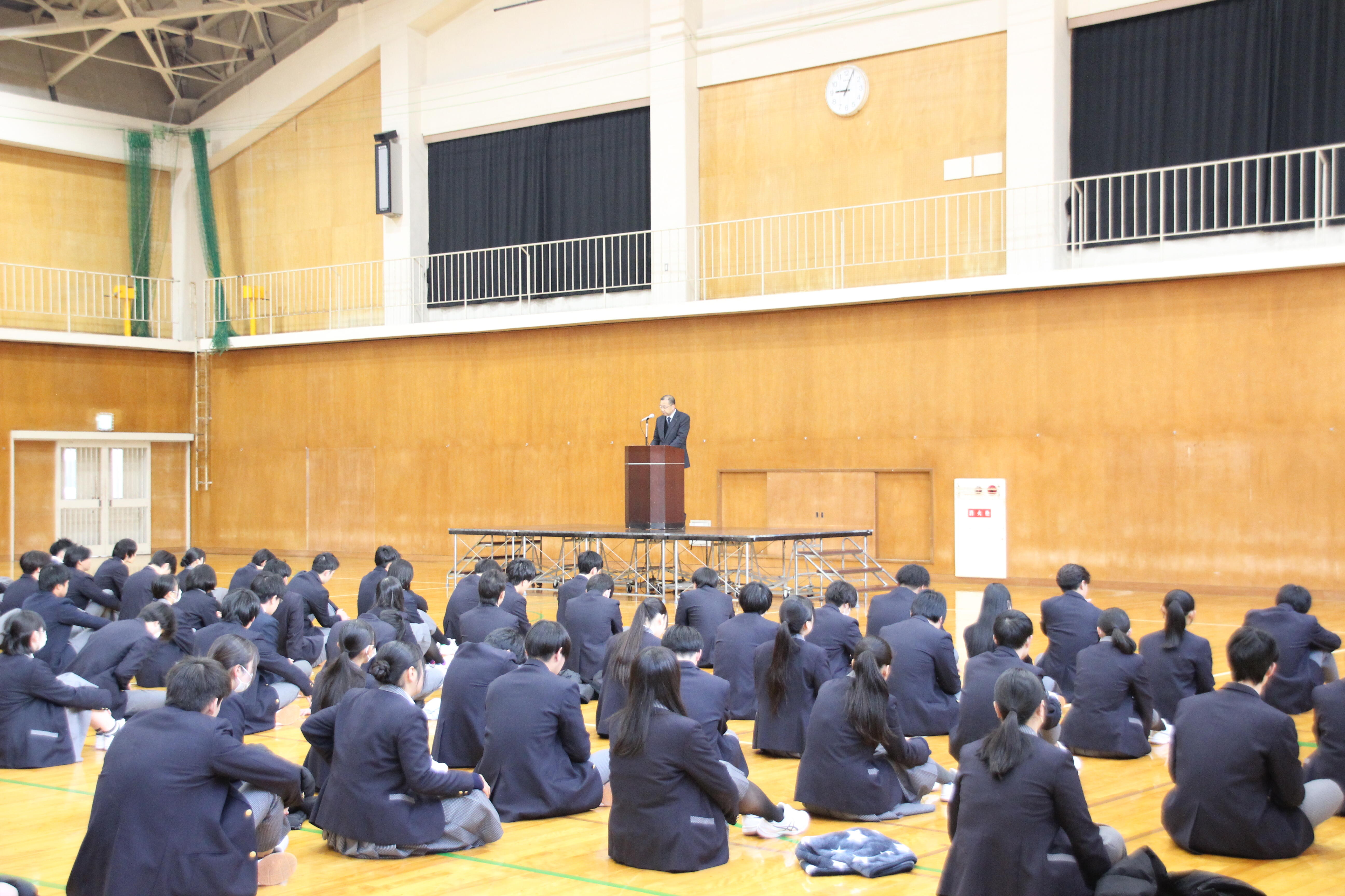 校長式辞の後、俣野教務部長からはフランスの細菌学者パストゥールの「幸運は準備された所に宿る」という言葉を引用して継続的な努力が大きな成果につながること、辻垣進路指導部長からは須知高校の校訓の「自主・規律・誠実」の中の「誠実」さが人間関係の中で大切であること、髙橋生徒指導部長からは集団生活を営む中でお互いを高めることが必要であるという趣旨の部長講話がありました。