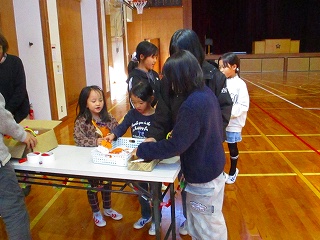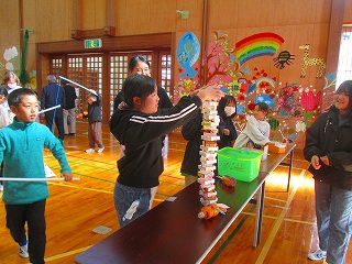 ワニワニたたきや箱の中身当てゲーム、ピンポン球落としなど、色々なコーナーがあり、休み時間いっぱい楽しむことができました。