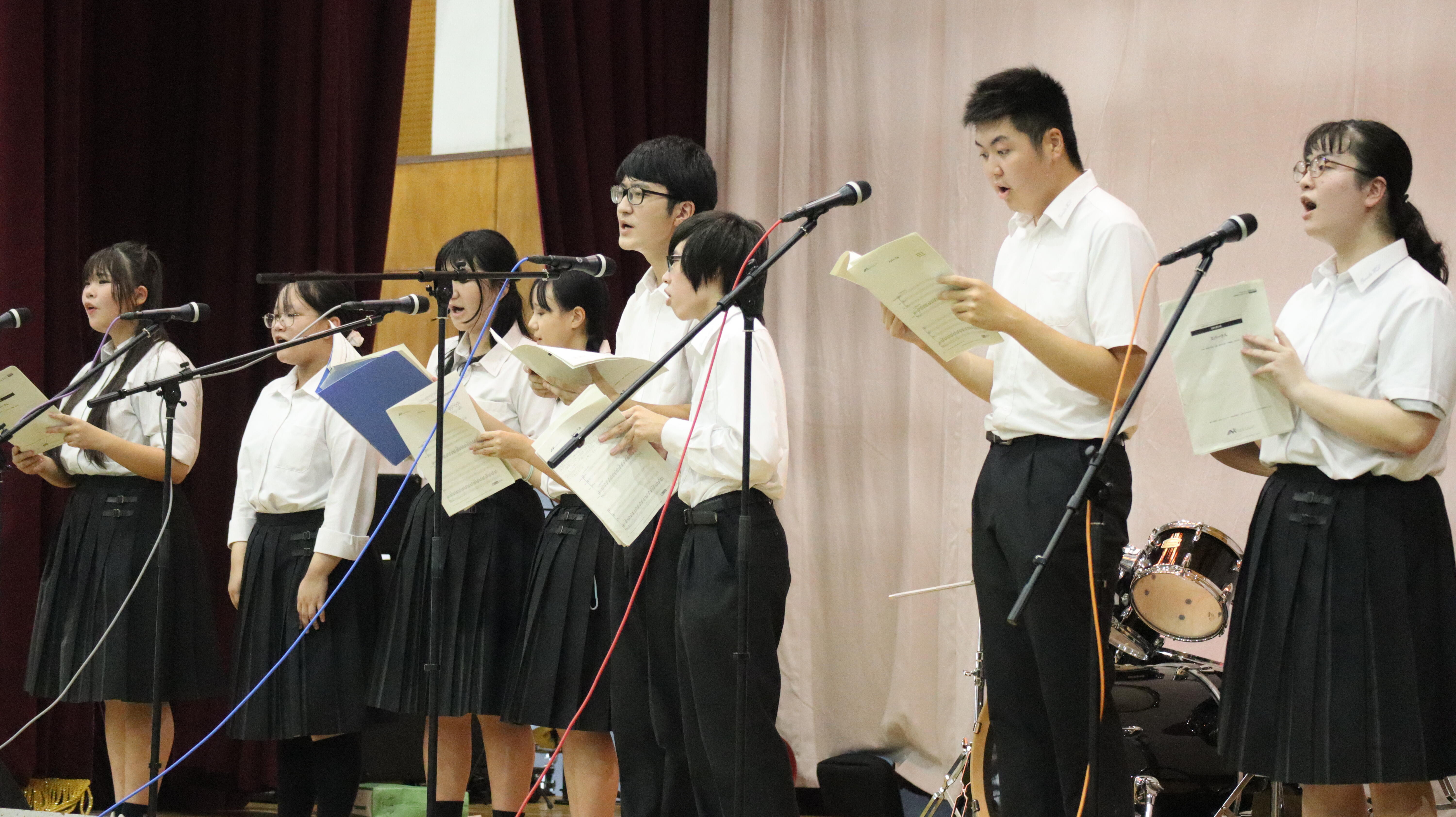 令和7年9月10日(水)~12日(金)、第63回田辺高校学校祭が行われ、合唱部は1日目に舞台発表、3日間とおして教室展示に取り組みました。体育館での舞台発表では、先生も合唱に参加していただき、大いに盛り上がりました。また、教室展示では、合唱にこれまでの活動の映像を合わせて流していました。合唱部の和気あいあいとした雰囲気が伝わったかと思います。