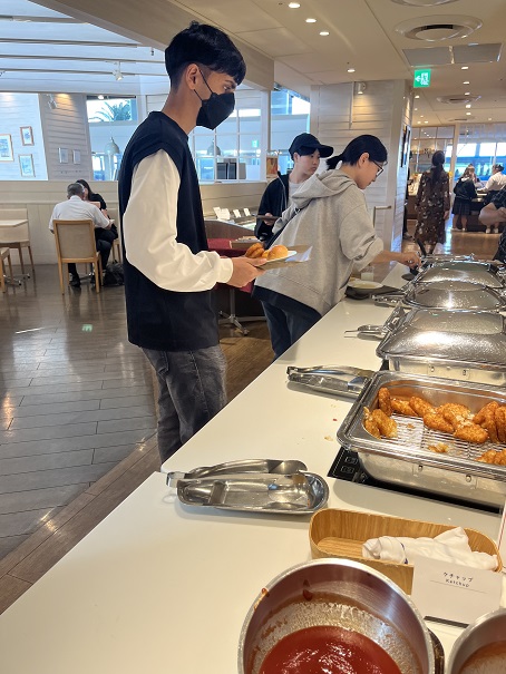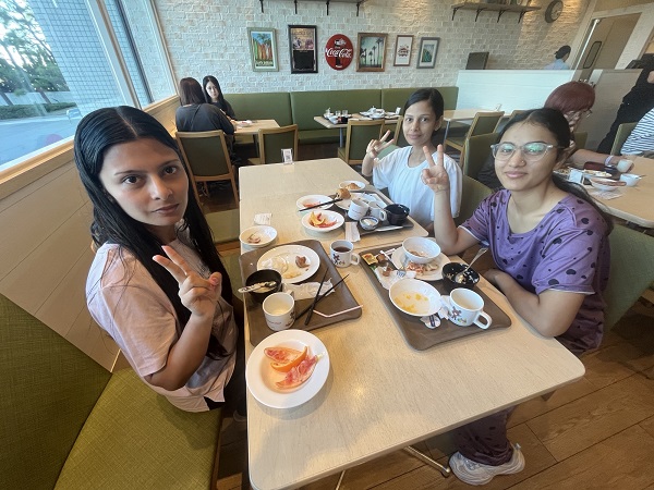 数名の生徒は、6時30分からの朝食を摂り、早々にディズニーランドに向けて出発しました。